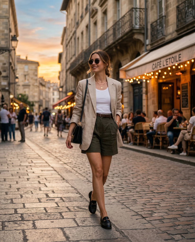 For a trend-forward twist, layer an oversized blazer over tailored shorts and a simple tank. This structured look adds sophistication while staying appropriate for warm weather. Choose lightweight fabrics and roll up the sleeves for a relaxed finish. As summer vacation outfits women experiment with elevated layering, this combination feels fresh and fashion-forward.