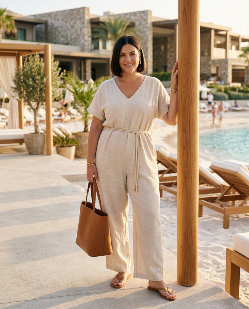 A linen jumpsuit is effortlessly sophisticated. Look for adjustable straps or a wrapped waist for a flattering fit. Rich leather sandals elevate the simplicity. It’s a one-and-done outfit you’ll reach for repeatedly.