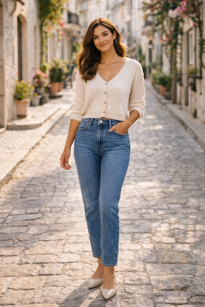 7. Cropped Cardigan and High-Waisted Jeans